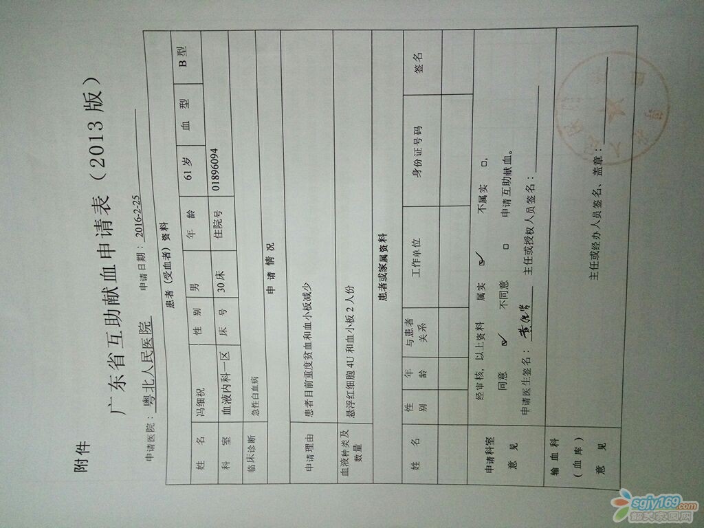 正文摘要:本帖最后由 風(fēng)雨/陽光 于 2016-3-5 22:32 編輯 由于老父親不幸得了骨髓增生異常綜合征,現(xiàn)正往白血病發(fā)展!老父現(xiàn)在粵北醫(yī)院化療,住院部9樓血液一區(qū)30號(hào)病床馮細(xì)祝。由于血庫B型血告急,身邊的親戚 ... |